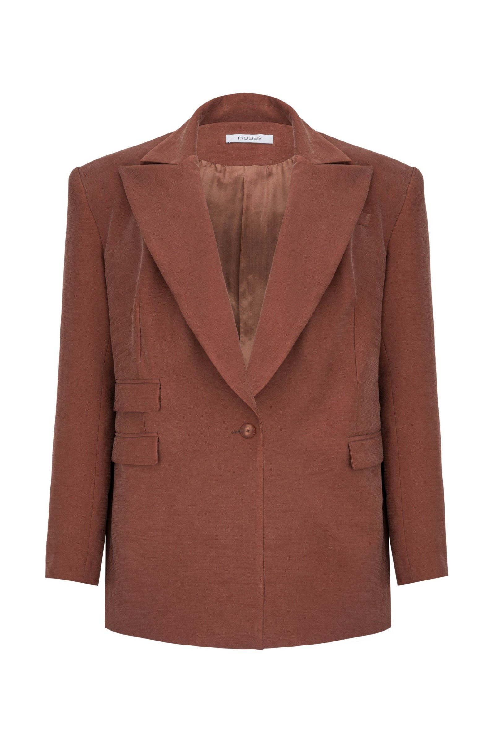The MODERN EASE blazer in terracotta is a distinctive interpretation of contemporary tailoring in the spirit of LESS, BUT BETTER. Cut like an oversized men's blazer, it captivates with its exaggerated form and deliberately distorted proportions.