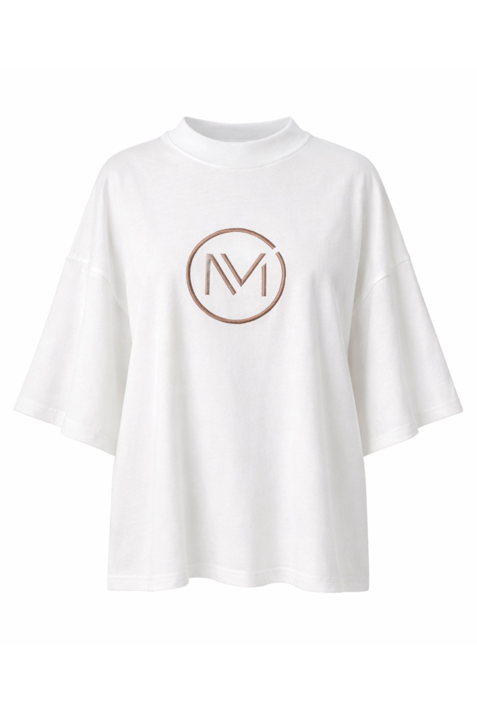 Fenomenalny t-shirt typu oversize z precyzyjnie wyhaftowanym na piersi logo naszej marki. T-shirt w kolorze złamanej bieli, haft w kolorze mocca.