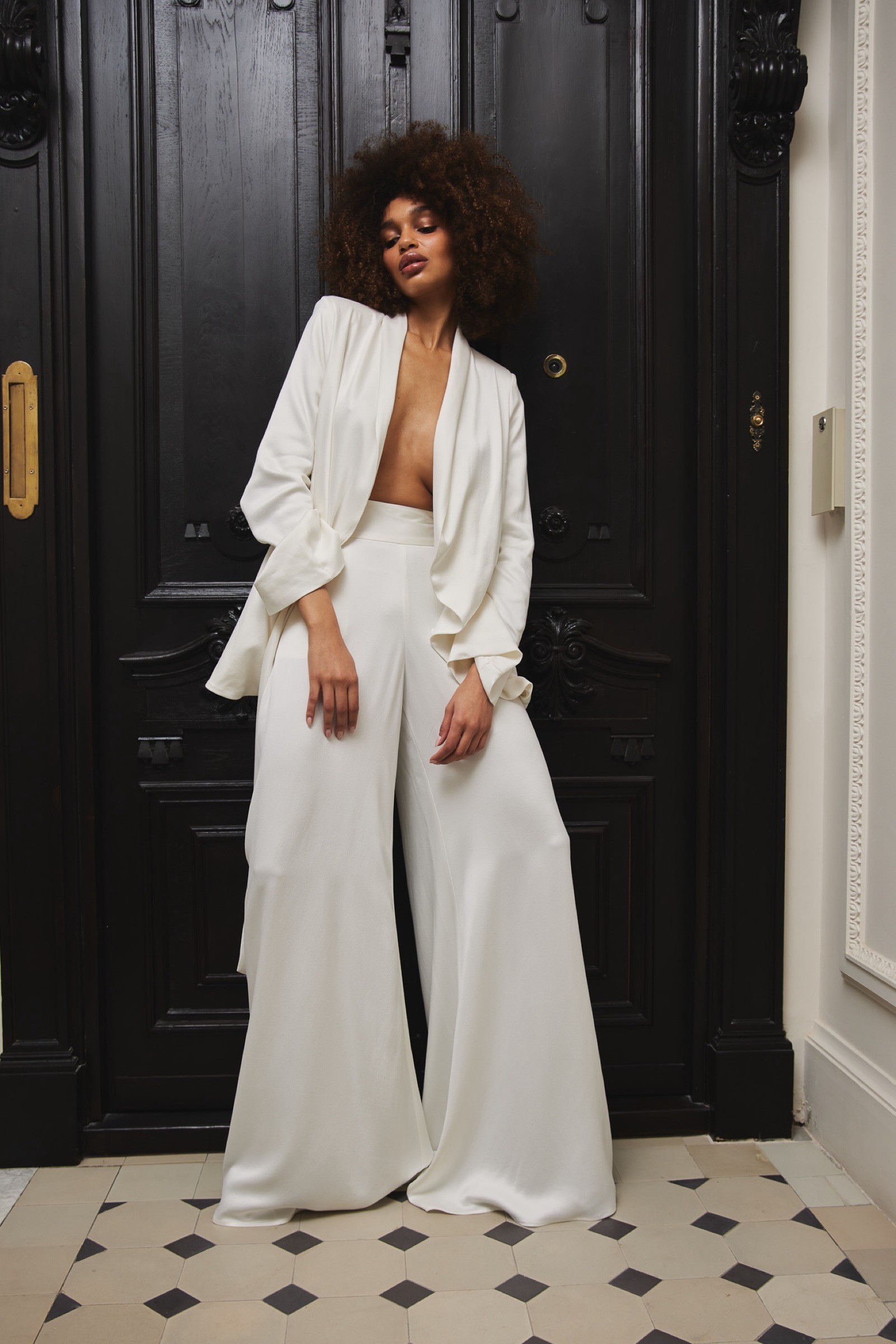 Spodnie PURE SILK wykonane są z najwyższej klasy, mięsistego jedwabiu, dopasowują się do talii i podkreślają kształty. Mają klasyczny krój, ale szerokość i długość nogawek dodaje im ponadprzeciętności. Przepięknie współgrają z marynarką PURE SILK.