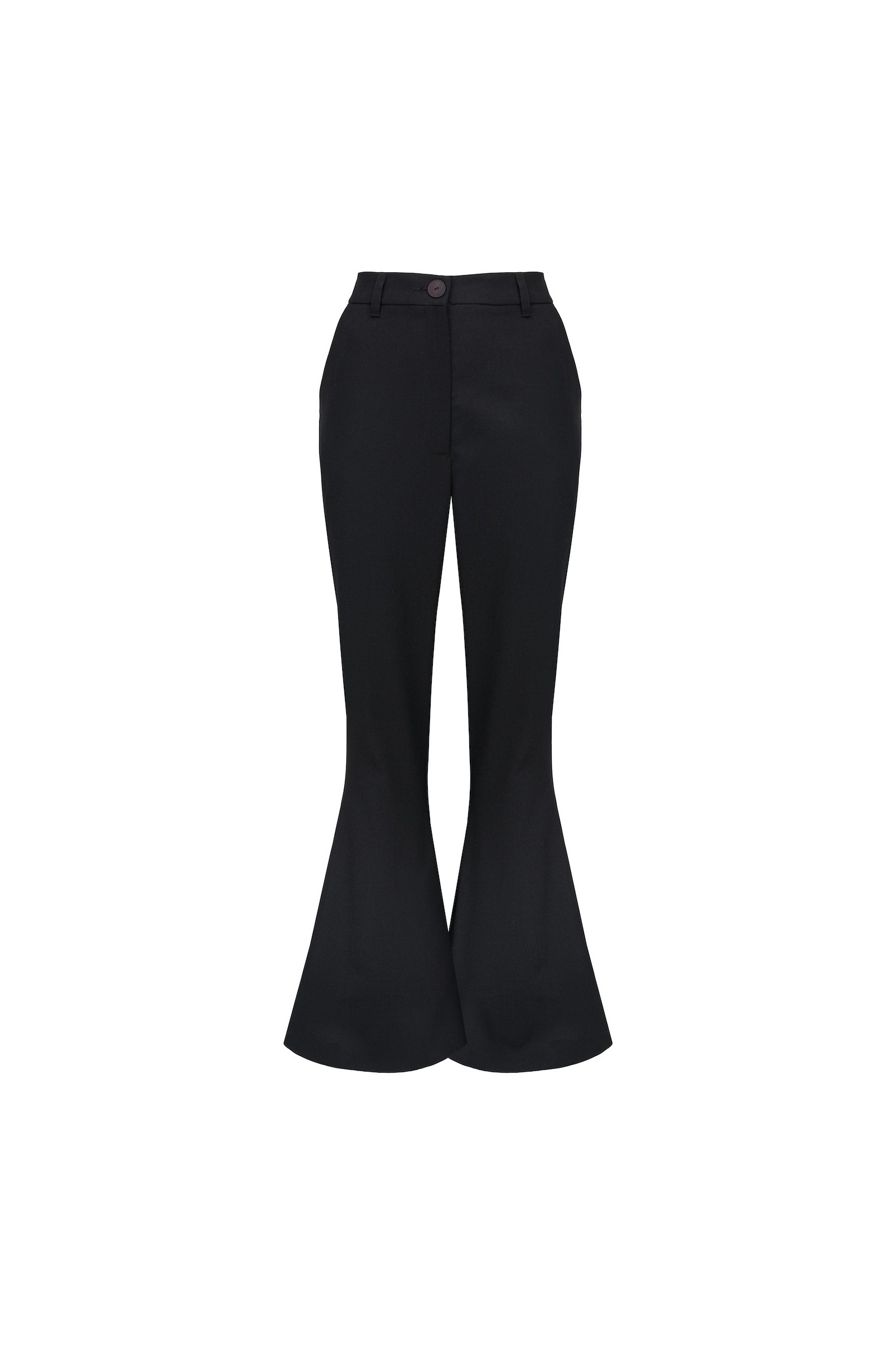 Spodnie dzwony z mocno rozszerzanymi nogawkami i wyższym stanem. Posiadają kieszenie.