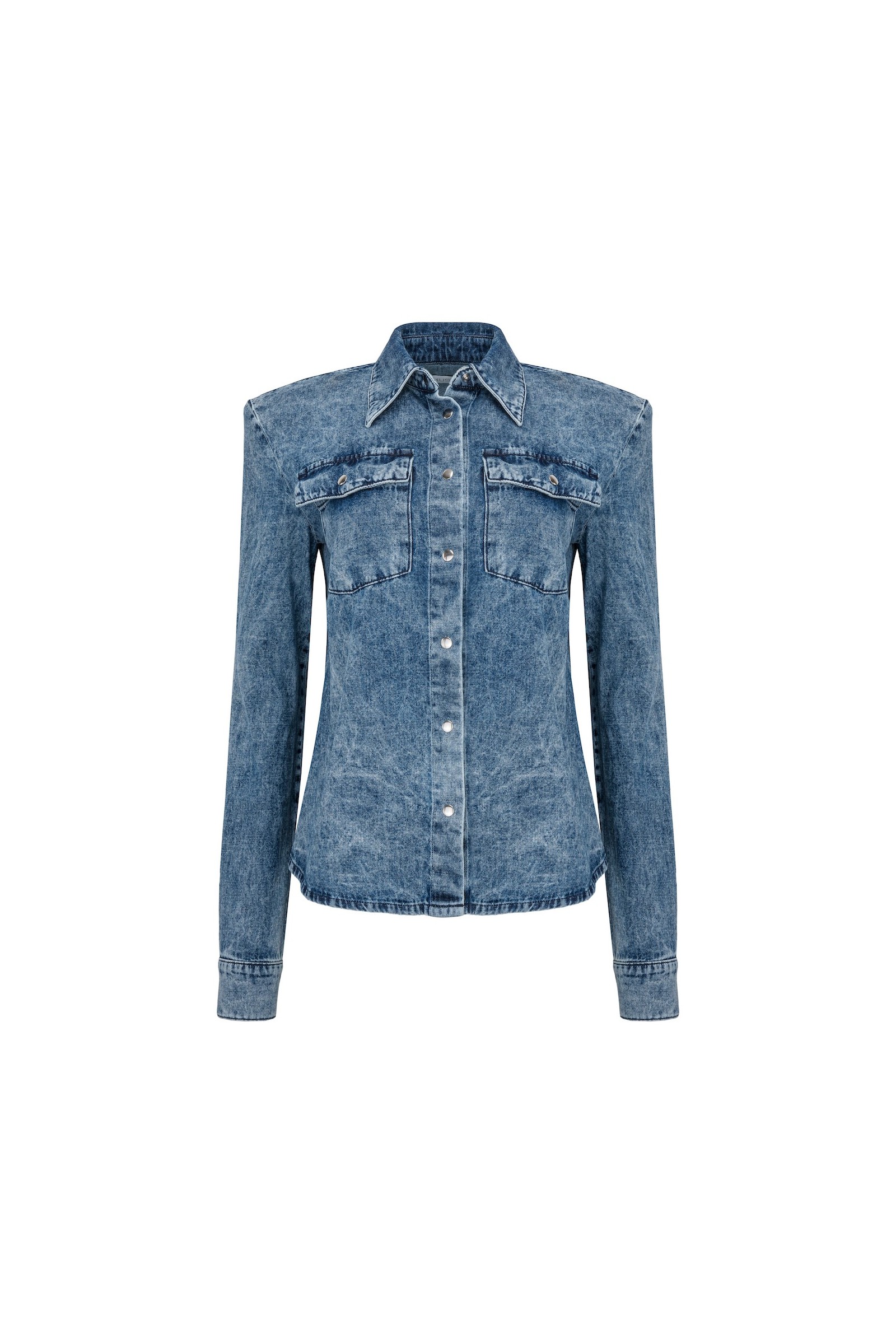 Genialna jeansowa koszula MOXY z pokaźnymi poduszkami na ramionach, dzięki którym koszula przepięknie podkreśla kobiecą sylwetkę. Poduszki są wyjmowane, dzięki czemu możesz stworzyć odrobinę mniej elegancką wersję koszuli. Zapinana jest na srebrne zatrzaski, delikatnie taliowana i posiada wprost idealną długość. Wykonana jest z najwyższej klasy jeansu ze składem 100% bawełny, miękkiego i przyjemnego w dotyku, a kolor koszuli sprawia, że wygląda ona bardzo retro.