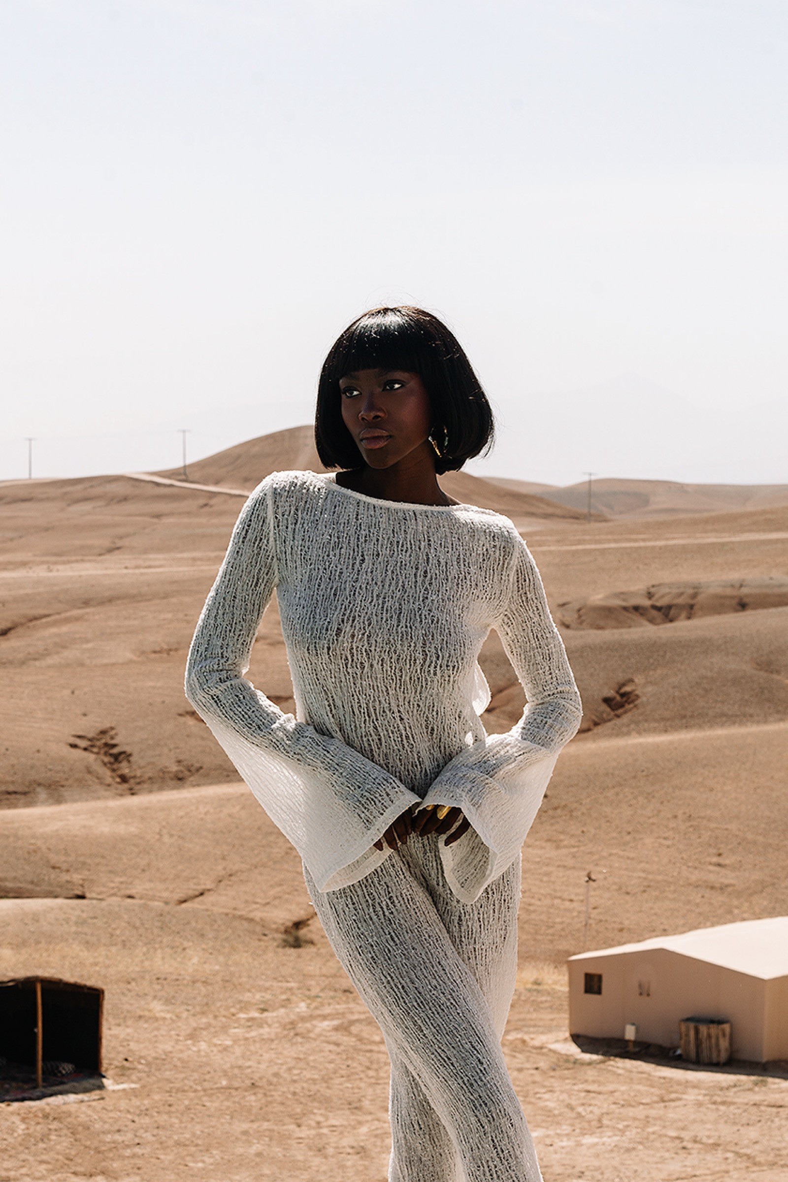 Przepiękna sukienka SOHA z odkrytymi plecami i rękawem zakończonym dzwonkiem. Wykonana z niesamowitej tkaniny o wyjątkowej strukturze.